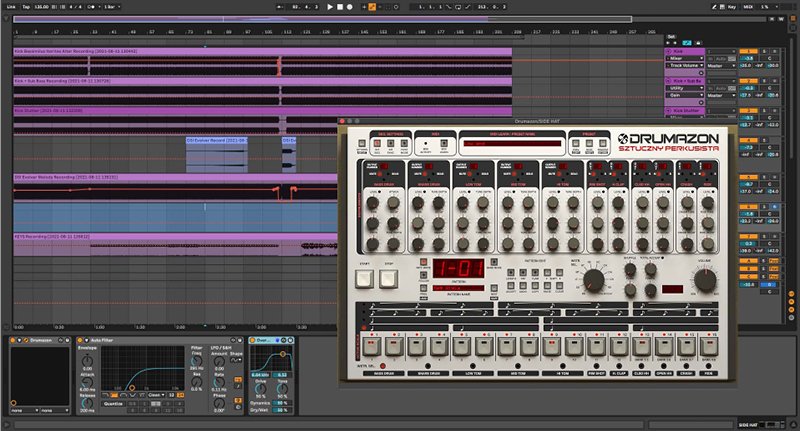 I used a VST called Drumazon for 909 hi-hats. I like this VST from D16, it has an authentic sound. For the ride cymbals, I recorded my Roland TR-9.