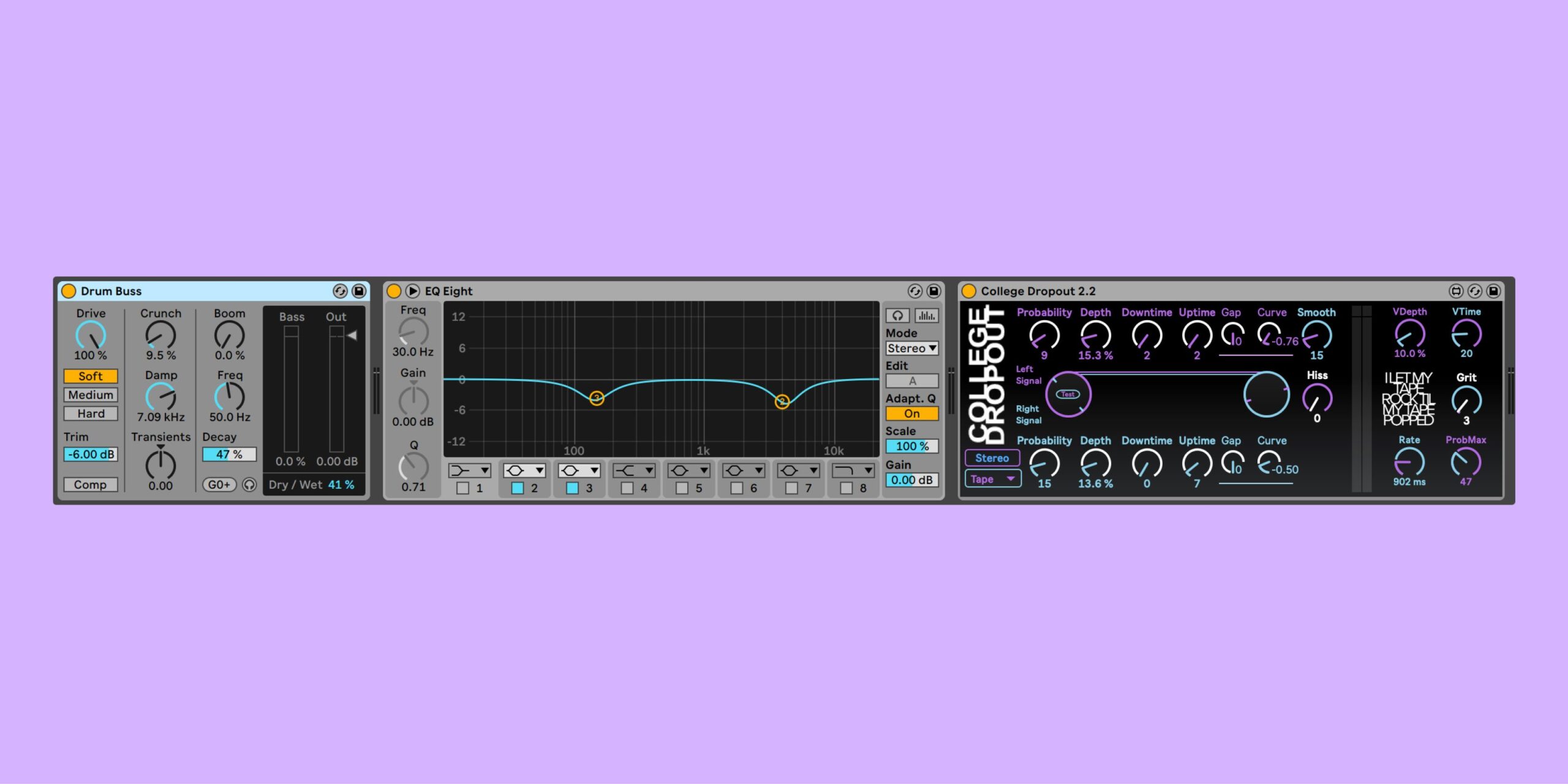 What effect is the College Dropout Max for Live device having on your percussion master buss?