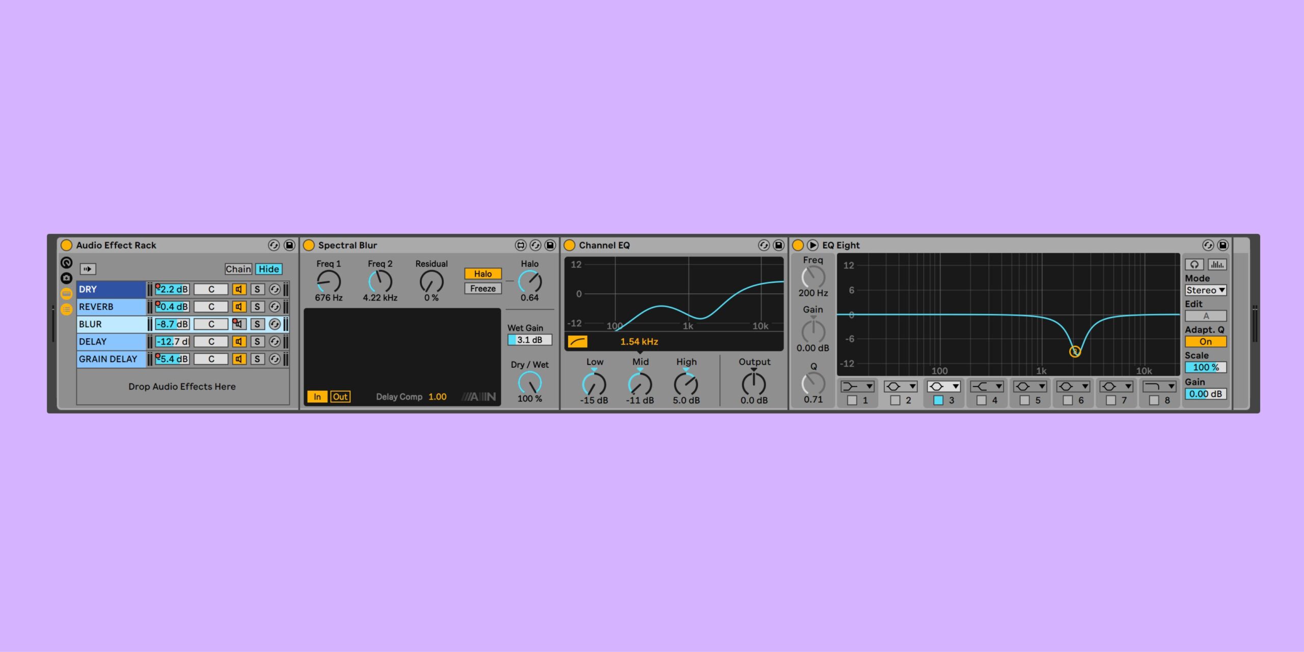 A lot of the width and space in this section seems to be coming from an Effect Rack containing Reverb, Spectral Blur, Delay, and Grain Delay devices. What was the thinking behind this effects chain?