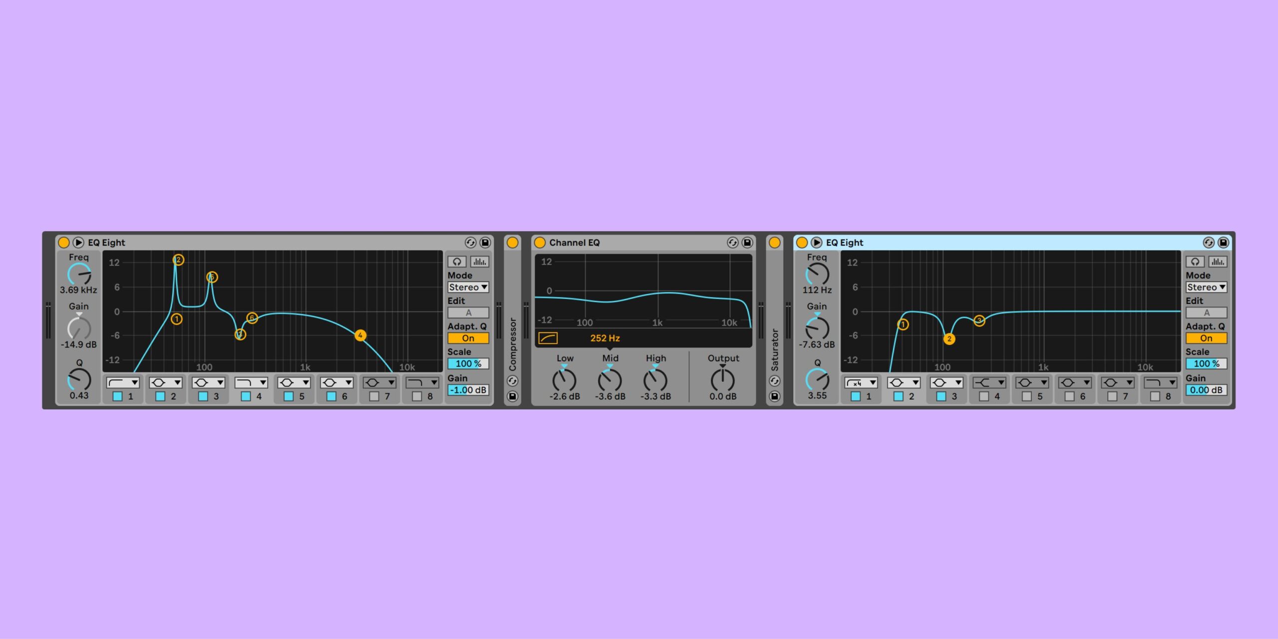 Jinku uses multiple EQ devices in his signal chains to spread the processing load